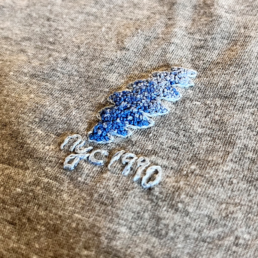 grateful dead 13-point lightning bolt, light blue french knot gradient with "nyc 1990" script