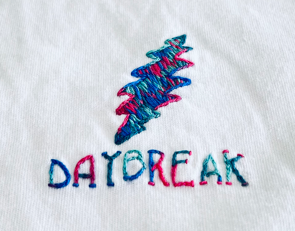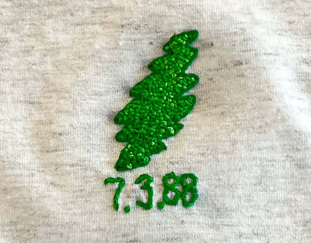 grateful dead scarlet>fire t-shirt with satin stitch fill and "9 2 78" textÂ
