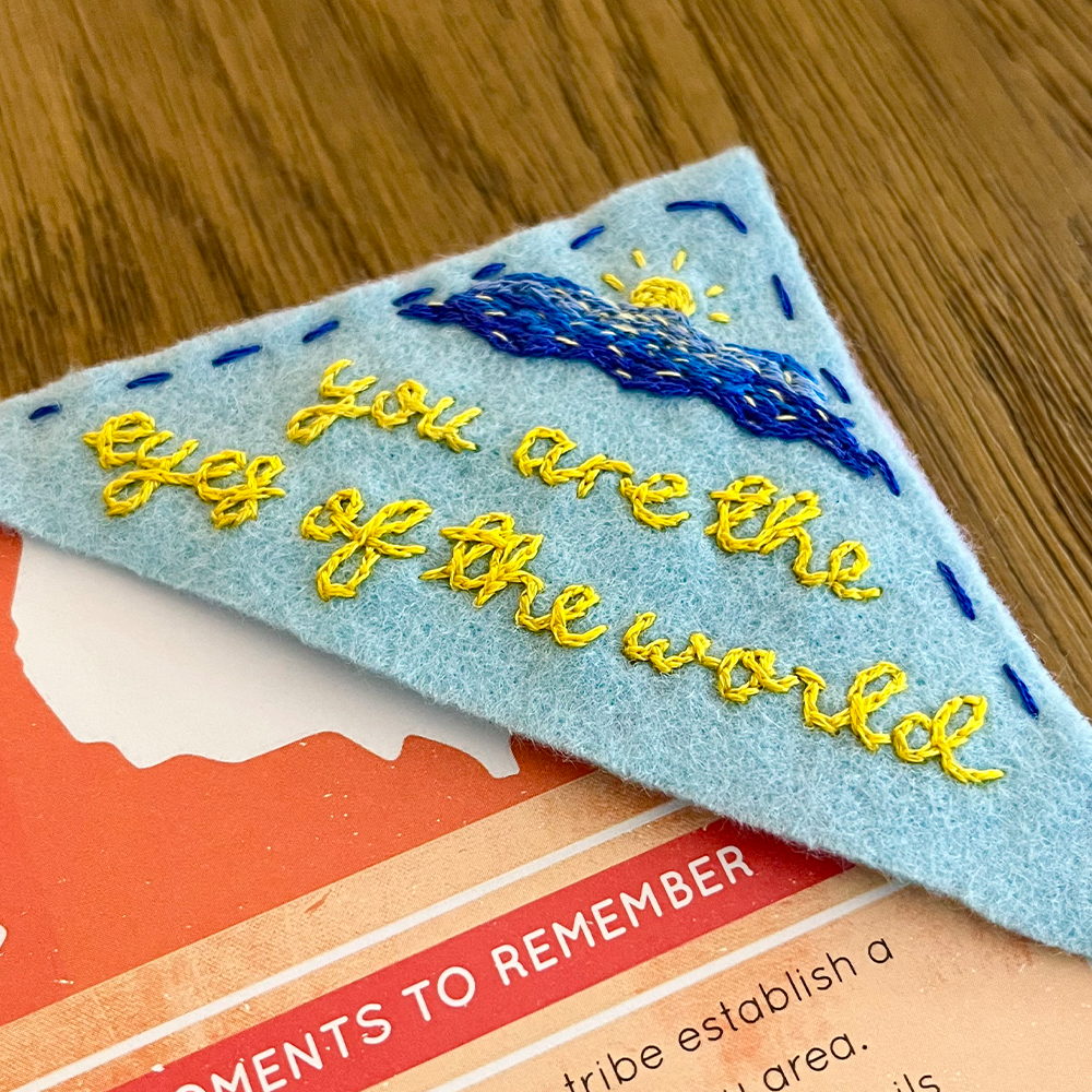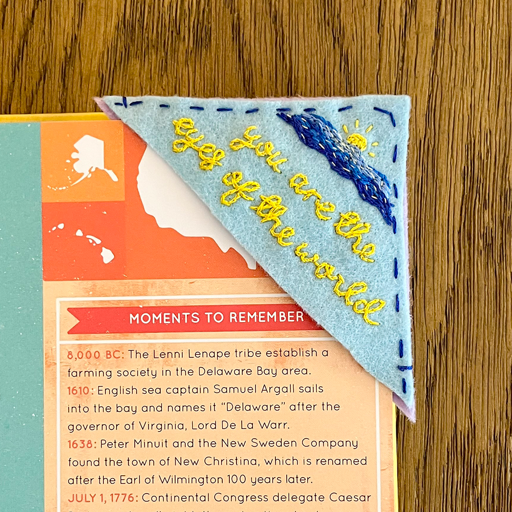 corner bookmark with ocean sunrise and "you are the eyes of the world" scriptÂ