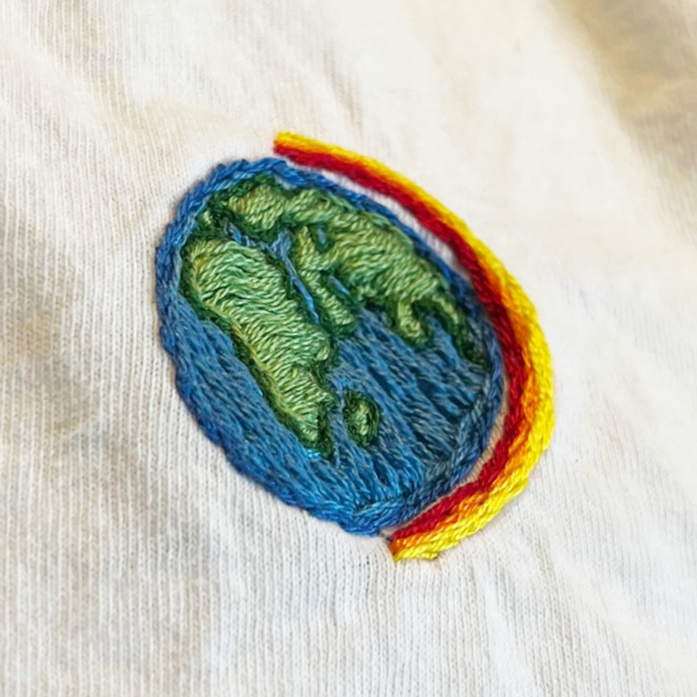 custom hand embroidery on cotton t-shirt