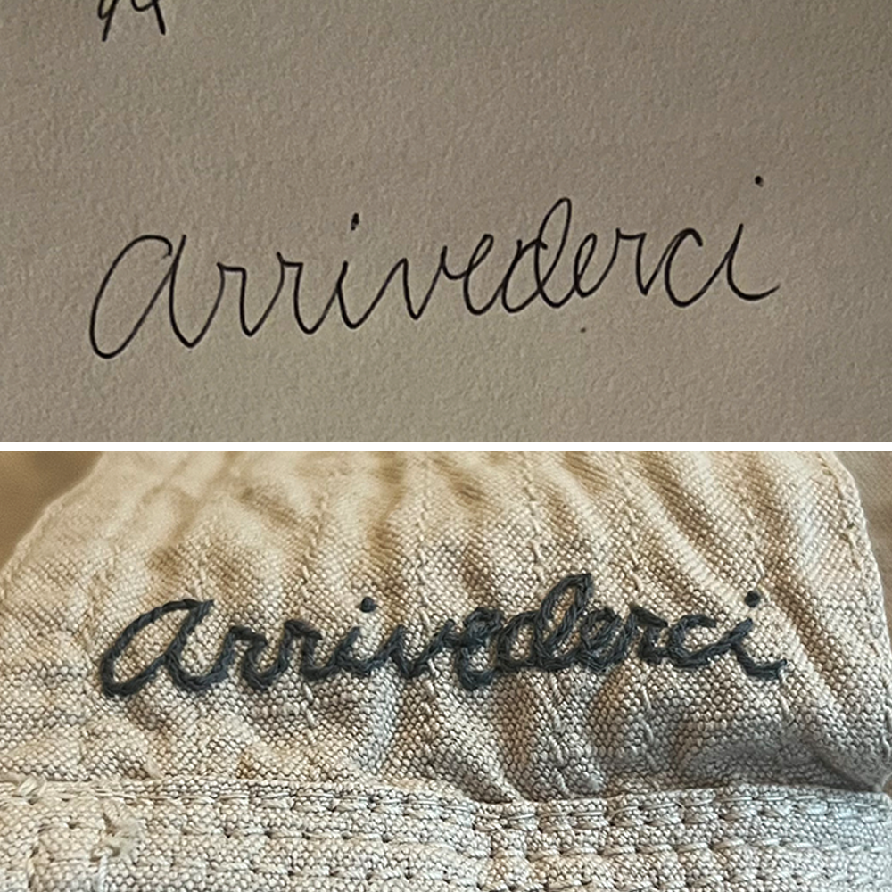 grey "vjm" custom script with a personalized oysters, ivy inn logo and martini