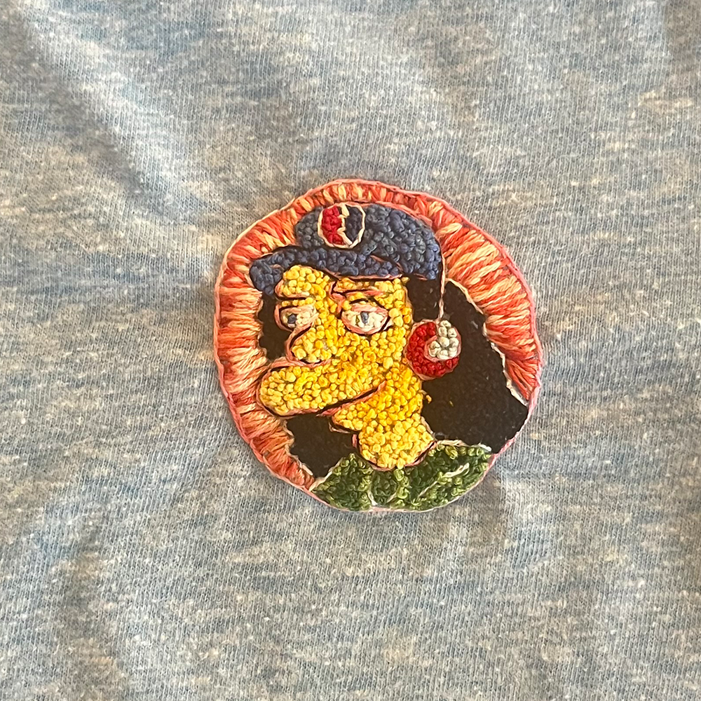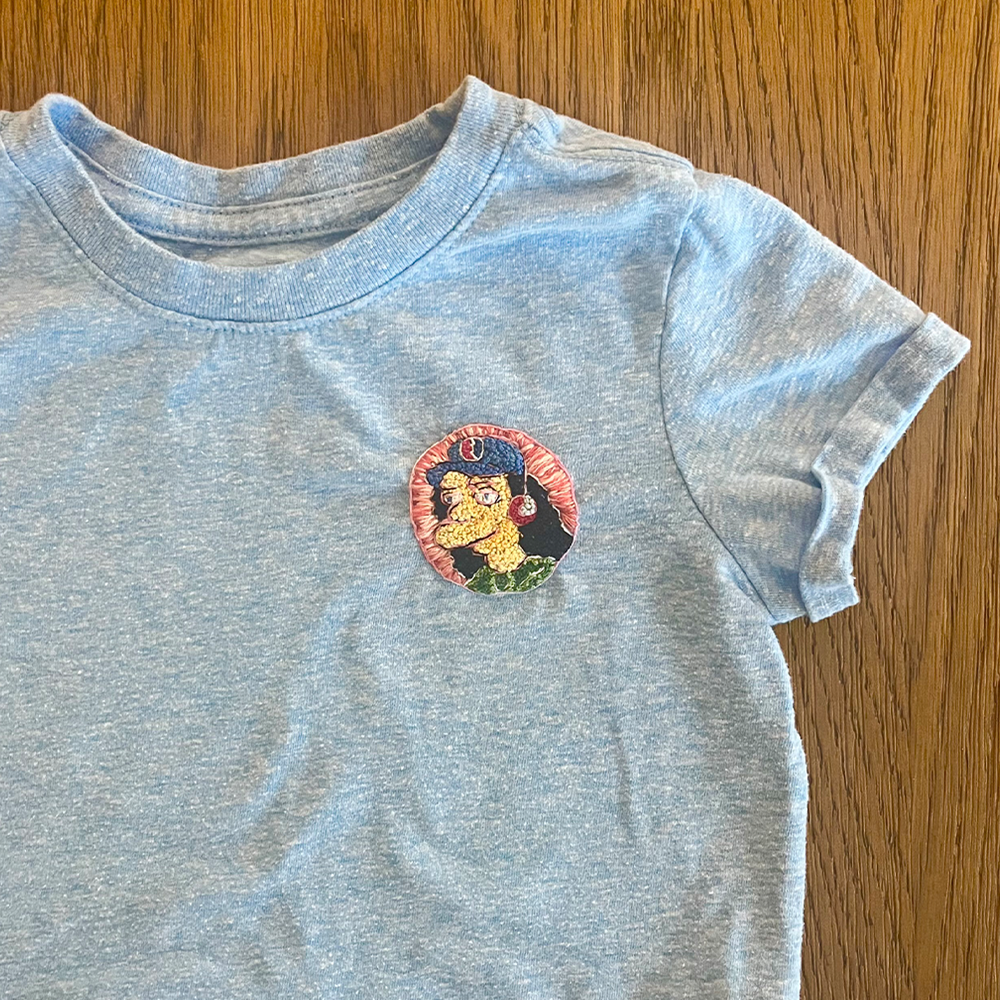 custom hand embroidery on cotton t-shirt